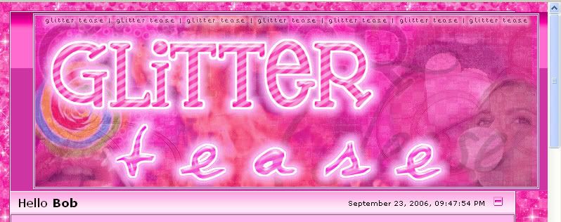 The logo shows at the top but it's shifted to the right with a purple blob at the left with my forum name: