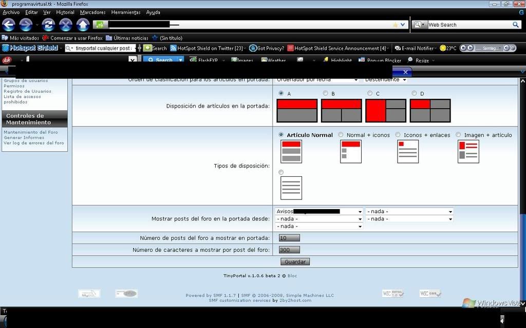 Tengo smf 1.1.7 y tinyportal 0.98  mi foro es www.wamix.net :D